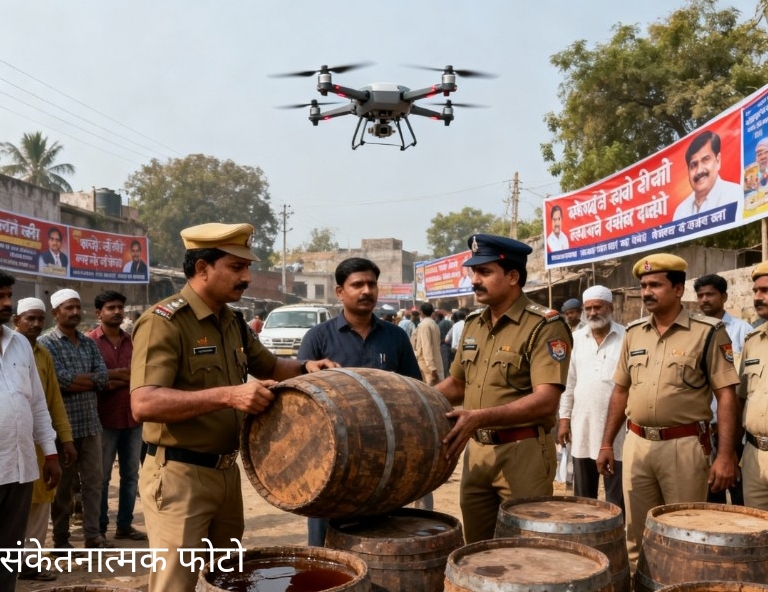 आदर्श आचार संहिता के तहत औरंगाबाद में अवैध शराब पर परी ड्रोन की नजर , कार्रवाई में 33 गिरफ्तार